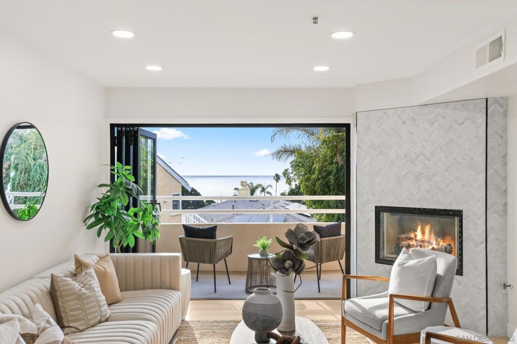 BIG OCEAN VIEWS in the heart of Bird Rock! Remodeled to perfection, this unit offers coastal living at its finest. Enjoy the walkability to nearby restaurants and shops, or take a scenic stroll along Camino de la Costa to Windansea Beach, just one mile away. This home has undergone a complete transformation from top to bottom. The breathtaking ocean view greets you as soon as you enter, with accordion-style doors that bring the outdoors in and let you soak up the Southern California weather. The kitchen boasts natural stone quartzite countertops with a waterfall edge, wood cabinets, and new appliances. The primary bedroom features water views, two closets, and upgraded dual vanities with quartzite countertops. The second bathroom has also been fully renovated, showcasing a tub/shower combo with stunning herringbone tile work. Enjoy water views from every room in the unit! Additional features include two dedicated parking spots. Don’t miss this rare opportunity to live the Bird Rock lifestyle with unparalleled ocean views!