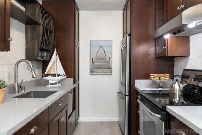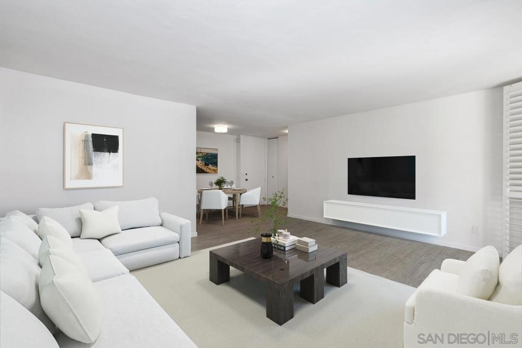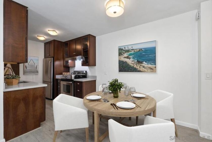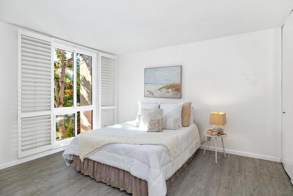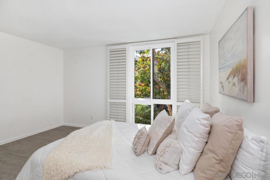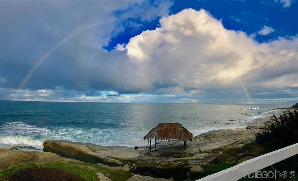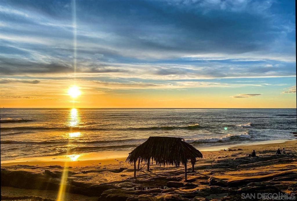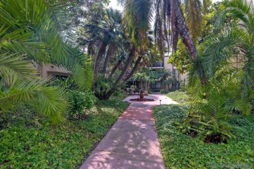 Coastal gem overlooking one of the sparkling pools and lush tropical courtyard, ideally situated away from street noise. This single-level, updated, sunny corner unit is a couple of blocks from iconic Windansea and local beaches. Birdrock's vibrant coffee scene, great restaurants, La Jolla Community Center, and bike path are all a short stroll away! The private balcony has a peek-a-boo ocean view, a new sliding door, a security door, and windows capturing fresh ocean breezes year-round. Conveniently close to an assigned parking space, elevator, laundry room, lockable storage, fitness room, 2 clubhouses, pools & spas. A rare and unique opportunity to own this stunning unit in Villa La Jolla, with its low inventory and competitive HOA fees. A true turnkey GEM with resort-style living in La Jolla.