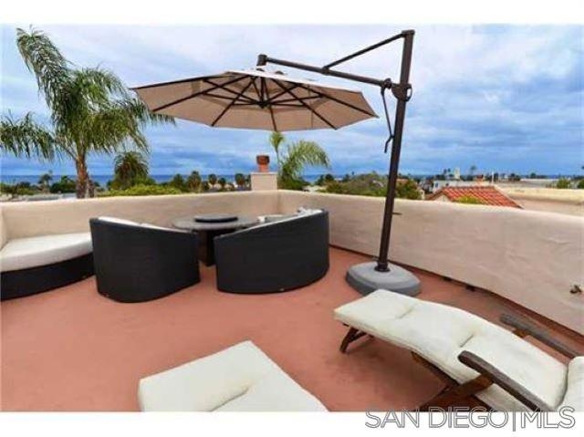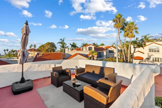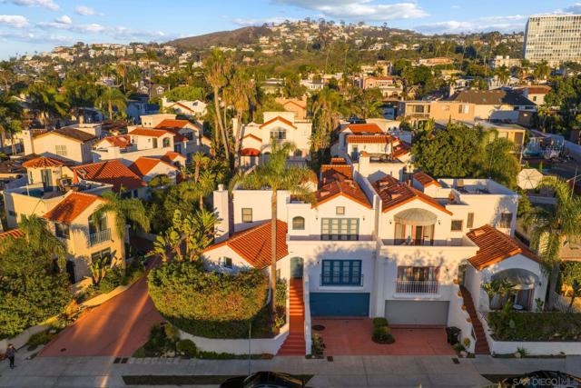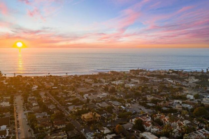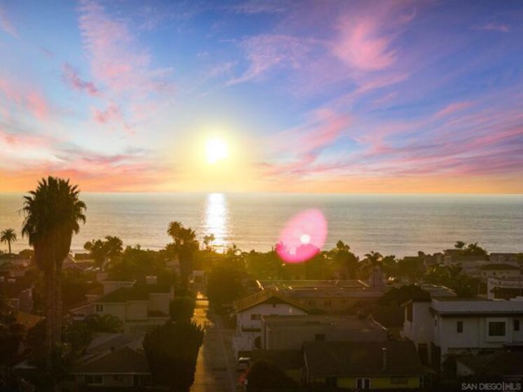 Experience stunning OCEAN and SUNSET views with timeless charm quintessential La Jolla living just minutes from the iconic WindnSea Beach, The Village, and La Jolla Cove. This beautifully updated 3-bedroom, 3-bath coastal retreat offers 2,058sf of comfortable elegance with the home features hardwood floors, granite countertops, and new carpet throughout. French doors from the dining room and kitchen open to capture ocean breezes, creating an effortless indoor-outdoor flow perfect for entertaining. The main level includes a bedroom and full bath, with additional French doors leading to a serene private patio surrounded by lush greenery. Upstairs, the spacious primary suite showcases ocean views and its own set of French doors, filling the room with natural light and coastal air. The spa-inspired bath features a standalone soaking tub and separate shower for ultimate relaxation. End your day on the rooftop deck, where panoramic sunset views remind you why La Jolla remains one of the most desirable coastal destinations in the world.