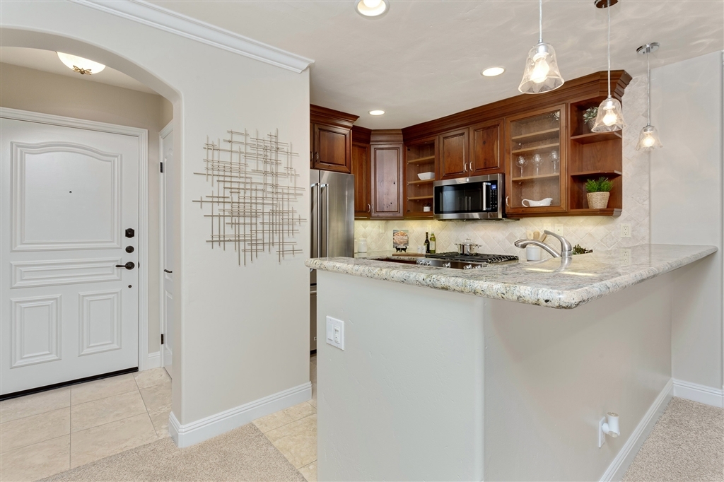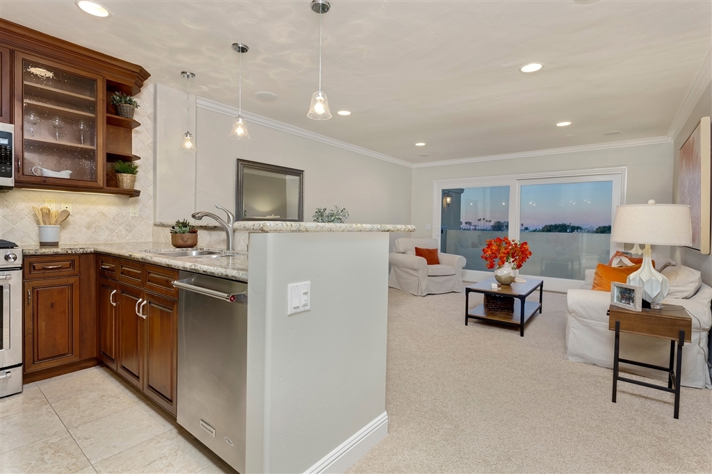 VIEWS!! LA JOLLA LIVING AT IT'S FINEST! Enjoy peek-a-boo ocean views and meandering strolls to La Jolla Village and the beach. This fully upgraded unit is flooded with natural lighting and offers crown molding throughout. Stunning kitchen boasts rich wood cabinets with glass accents and crown molding, pantry, granite counters with full height stone back splash. Built-in microwave, and stainless appliances. The living room wall is an extra-large patio door that opens wide to let the cool breeze flow through all year long for the ultimate indoor outdoor lifestyle. Spacious master features recessed lighting and a gorgeous trey ceiling, You will be spoiled by the private bath with elegant stone accents. Enjoy the peek ocean views while relaxing on your private balcony. No need to worry about parking, as you will have a private parking space! Walk to trendy cafes, quaint shops and the beach! Don't wait...this gem won't last!. Neighborhoods: Positano Other Fees: 0 Sewer: Sewer Connected Topography: LL