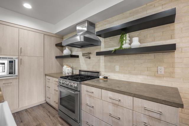 Walk to all the Village shops and restaurants from this chic urban two-story townhome located right in the center of town. The main level offers a light-filled open floor plan with kitchen, family and dining room, two spacious primary bedroom suites with large ensuite bathrooms with Modeli cabinets and walk-in closets. First level features a private bedroom with ensuite bath, private entry and patio. There is a tandem two car garage with sealed concrete floors. Features include engineered and concrete flooring, European-style kitchen with metro finish cabinetry, honed granite & limestone counters, Dacor appliances, LG refrigerator, pot filler, and farmhouse sink. The laundry room is located on the main level for easy access. Ideal for primary or second home.