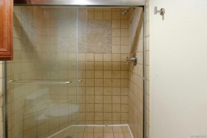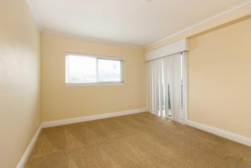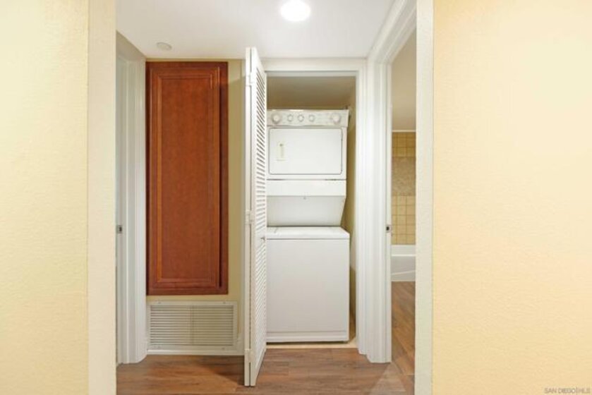 Single level 2 bedroom, 2 bath 938 square foot penthouse pied-a terre in the heart of La Jolla Village in Bella Capri with an assigned underground parking space and an interior private laundry. The efficient kitchen has stainless steel appliances and a gas stove top, custom maple cabinetry and granite counter tops. The master suite has a sliding door to the balcony with a view of the night lights from Mt. Soledad. The guest bedroom has a peek of the ocean and a walk-in closet. There are ceiling fans and lots of natural light throughout. This condo is ideal as a primary home, rental or second home. Come see for yourself.