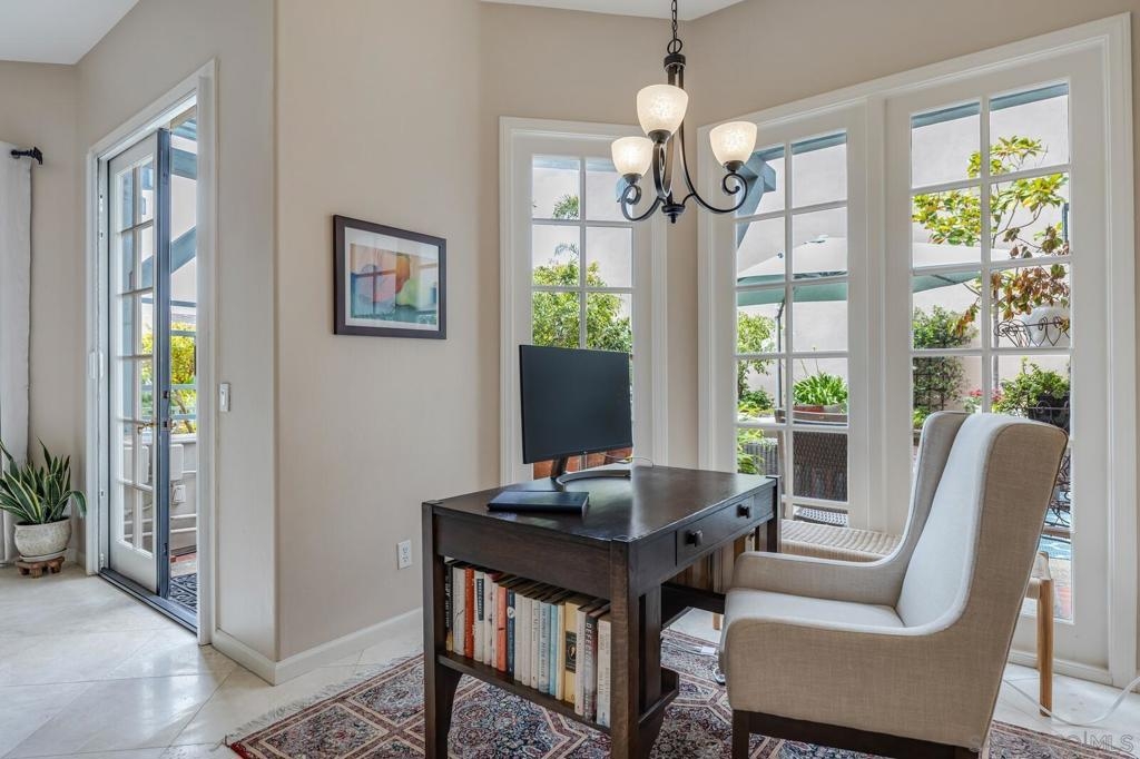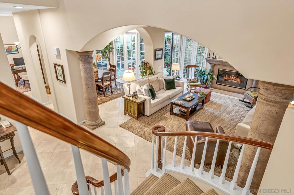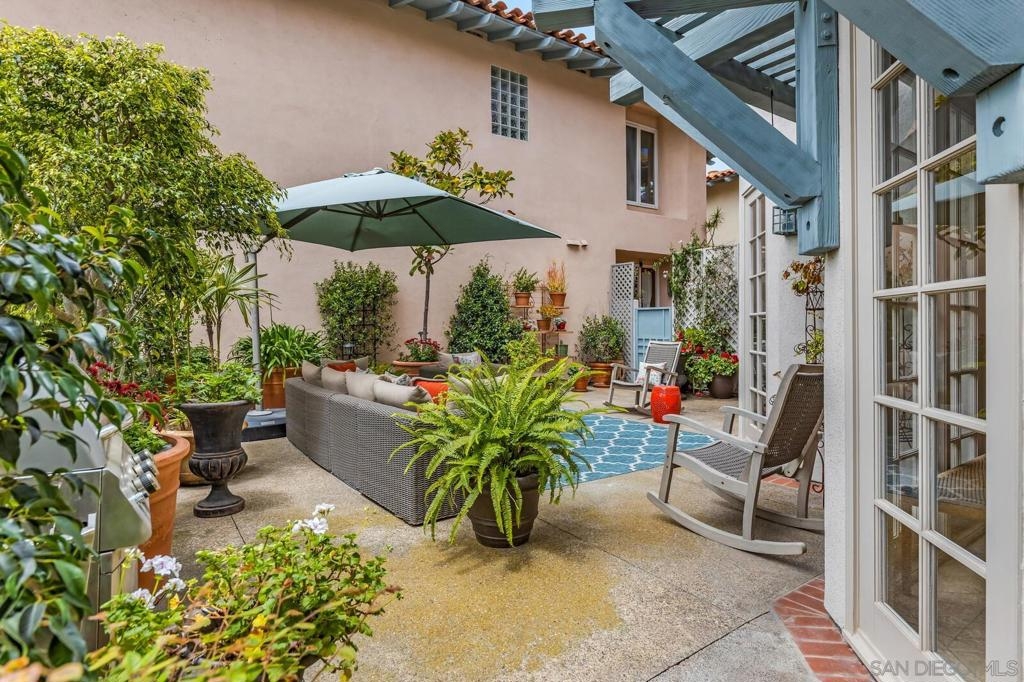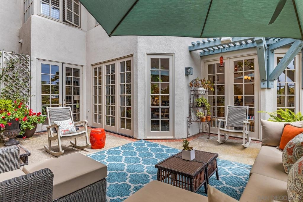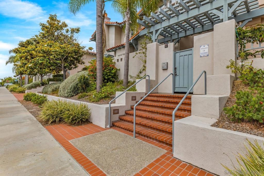 Experience the rewards of luxurious and carefree coastal living at this exceptionally rare townhome in La Jolla’s gated Villas of Ivanhoe enclave. Highlighted by one of the community’s largest and best-positioned patios, the former model residence showcases a host of preferred upgrades and appointments in a two-level living environment that is bathed in natural light and extends approx. 2,530 s.f. An impressive entry door framed by leaded-glass sidelights opens to reveal a double-height foyer that leads to a dramatic circular staircase, a fireplace-warmed living room with beamed ceilings and French doors opening to the patio, and a formal dining room with a bay of floor-to-ceiling windows. Another fireplace and surround sound are revealed in the family room, and the open-concept kitchen is upgraded with granite countertops, contemporary cabinetry, an island with built-in wine storage, an adjacent laundry room, and high-end stainless steel appliances including a Dacor cooktop and a built-in refrigerator. Three bedrooms and 2.5 baths are featured, including a sumptuous primary suite with a vaulted ceiling, a fireplace, and a spa-caliber bath with granite countertops, separate vanities, a soaking tub, and a separate shower. Two premium subterranean side-by-side parking spaces and an oversized storage area are included. Limited to just 13 luxurious townhomes, the gated Village of Ivanhoe is located in the heart of La Jolla’s Village, mere moments from La Jolla Cove, world-famous beaches, vibrant shops and restaurants, quaint cafés, golf at the La Jolla Country Club. Sewer: Sewer Connected Topography: LL