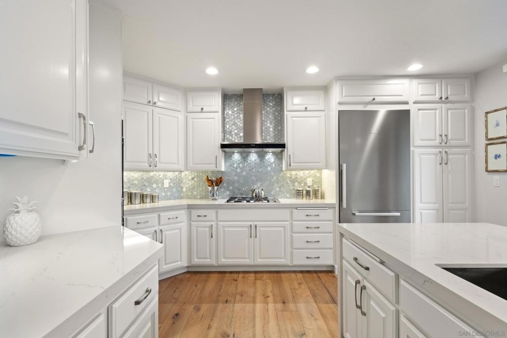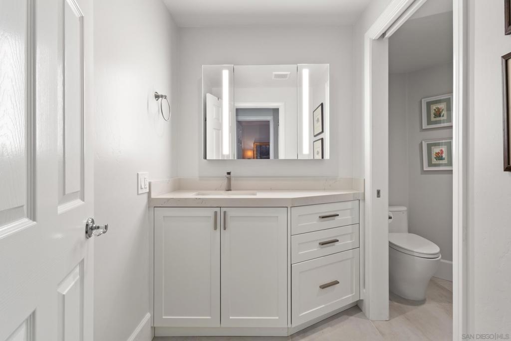 Experience refined single-story living just moments from the ocean and the energy of La Jolla Village. This beautifully reimagined 3-bedroom, 2.5-bath residence offers 2,460 sq. ft. of coastal charm and contemporary luxury in a tranquil, tree-lined setting just 2.5 blocks from the beach and close to world-class dining, shopping, The Bishop’s School, and the La Jolla Art Museum. Thoughtfully updated throughout, the home features owned solar, new interior paint, plush bedroom carpeting, upgraded bathrooms, and elegant French Oak floors. The chef’s kitchen is equipped with all Miele appliances, a gas cooktop, stainless sink, quartz countertops, full-height cabinetry, and a striking backsplash. The open-concept living area centers on two sun-filled patios ideal for al fresco dining or quiet relaxation, along with a versatile den/media room perfect for a TV lounge, reading room, or office. The serene primary suite offers a generous walk-in closet and a remodeled spa-like bath. A dedicated laundry room and abundant storage enhance daily convenience. Additional highlights include a two-car garage with extensive storage plus a separate room with a SubZero refrigerator—ideal as an office, gym, or storage space. The home also offers air conditioning, secure entry, and elevator access. With its walkable location, timeless updates, and boutique setting of only five homes, this residence captures the essence of La Jolla Village living—elegant, effortless, and coastal.