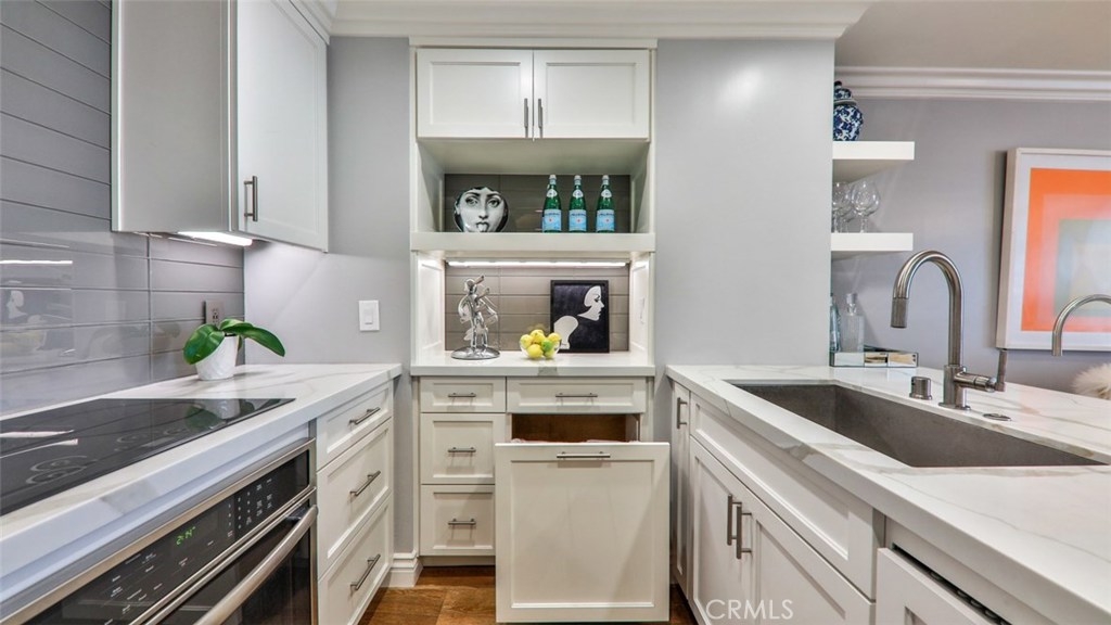 Stunning Home Located in the Heart of La Jolla Village! Just One Block from the World Famous La Jolla Cove. Short Walk to Fine Dining, Shopping, Boutiques, Galleries, The Lot - Luxury Cinema, The Conrad Prebys Performing Arts Center, Contemporary Art Museum. Recent Updates Include Gorgeous Custom Designed Kitchen with Elegant Quartz Countertops and Mid Century Modern Glass Backsplash Tile, both Complementing Mid Century Modern Design of the Building. Devonshire La Jolla was designed by architect Russell Forester, and it was build in 1971 (HOA has very strong reserves). A fully funded refresh of the interior courtyard is about to commence. Kitchen also Includes Built-In Refrigerator, Custom Paneled GE Monogram Collection, Induction Cooktop - GE Cafe Collection, Sharp Microwave Drawer, Custom Paneled Bosch Dishwasher, Brizzo Faucet. Sleek and Timeless Design of this Pied-a-terre, is Enhanced by New Wide Plank Blonde Oak Flooring, Skim Coated Walls, Chic Lighting Fixtures, Baseboards and Crown Moulding, Ceiling Fans. Custom Built Hall Linen Closet with Slide-out Shelving, Bosch Washer and Dryer were added and are Included in the sale as well. Kitchen with Large Breakfast Bar Opens to the Spacious Living Room with Balcony with Hillside Views. Spacious Storage Area on the Balcony. Two Bedrooms and Two Bathrooms. Corner Unit. Secured and Gated Parking Garage, Large Storage Cabinet next to the the Assigned Parking Space. HOA Includes Water, Trash, Cable, Internet and Insurance.