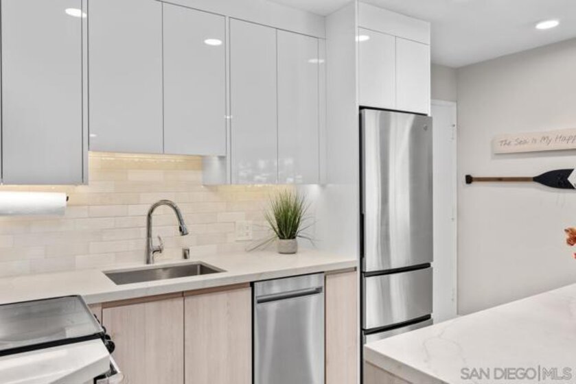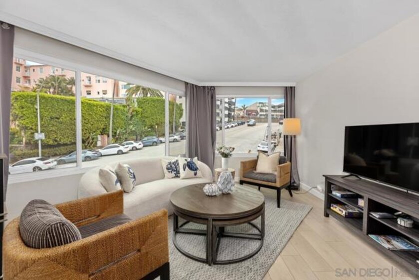 Step into coastal living at its finest in this beautifully remodeled 2-bedroom condo, perfectly positioned across the street from the iconic La Jolla Cove. Nestled in an intimate 8-unit building, this light-filled residence offers ocean views from the living room and unbeatable walkability to world-class restaurants, boutique shops, and scenic coastal paths. Inside, you'll find a bright and airy open layout, stylish finishes such as Italian cabinetry, and in-unit laundry for ultimate convenience. Enjoy the ease of having your own dedicated 1 car garage parking space—a rare find in this prime Village location.
