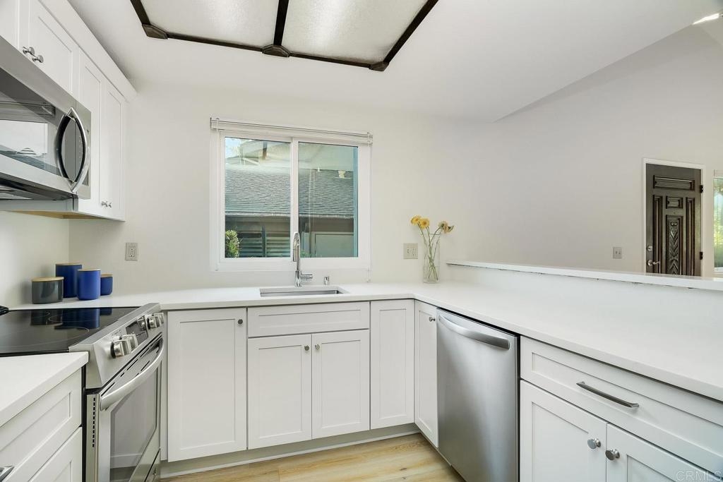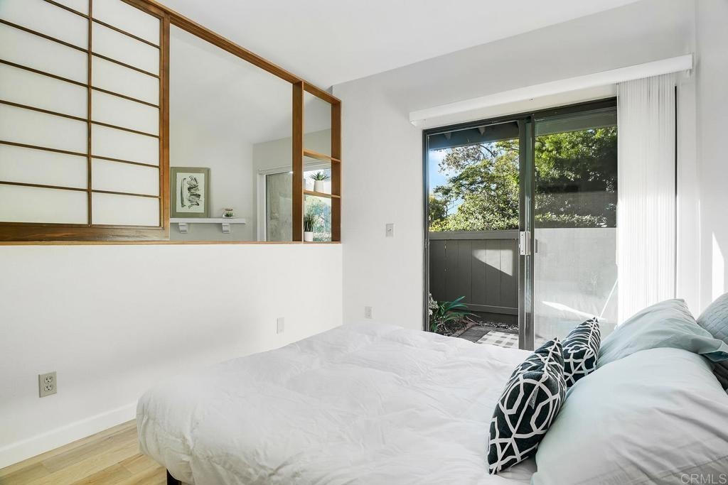 This rarely available single-level home in the sought-after La Jolla Park Villas is a bright, contemporary retreat that showcases open-concept living at its best. Enjoy a coveted corner location with no neighbors above or below, offering exceptional privacy and effortless access to the park. Vaulted ceilings and newer windows fill the space with natural light, creating an expansive, airy ambiance framed by serene tree views. The inviting living area flows seamlessly into the remodeled kitchen, complemented by updated flooring, lighting, and a refreshed bathroom. The bedroom enhances the home’s flexible design, featuring sliding Shoji half wall access to the living room providing options to maximize openness and natural light or close for privacy. A spacious walk-in closet with attic access highlights the home’s smart, streamlined storage solutions. Step outside to a private patio that extends the living space and captures tranquil views of the surrounding greenery. Additional conveniences include in-unit laundry and a dedicated carport with extra storage. Ideally located near UCSD, the trolley line, shopping, dining, beaches, and daily essentials, this home offers the perfect blend of peaceful living and prime La Jolla convenience.