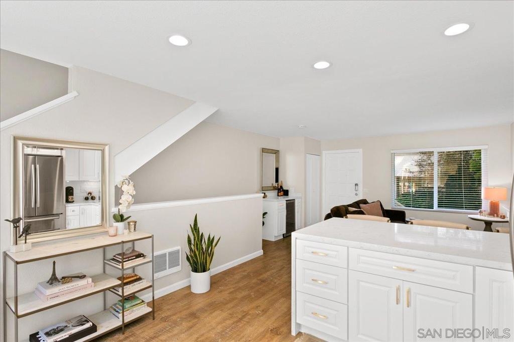 Come experience life in highly sought-after La Jolla 92037 in this pristine townhome, offering an open floor plan, multi-level living, and private attached garage, completely renovated to perfection from top to bottom. Enjoy a beautifully updated kitchen with soft-close white wood cabinetry, stylish brushed gold pulls, and a beveled edge white subway tile backsplash. An extended peninsula area with elegant waterfall quartz countertop is the perfect space to entertain friends or work from home. The kitchen features all new Samsung stainless steel appliances, updated dimmable recessed lights, and an ultra-lux white granite sink by Blanco. Embrace your inner sommelier with a custom built-in bar area, complete with wine refrigerator, white wood cabinetry and a sleek white quartz countertop. Enjoy two private patio areas, one off of the main living area, and the second off of the primary bedroom, providing true California indoor-outdoor living. The fully renovated bathroom features an oversized grey wood vanity with a Carrara Marble countertop and a new shower tub combo with white subway tile surround. The Woodland West II community is conveniently located West of I-5 freeway, South of UCSD and just a short drive to the La Jolla cove. Located near all the all-new Nobel trolley station, Villa La Jolla Park and all the shopping and dining at La Jolla Village Square and The Shops at La Jolla Village, including Whole Foods, Trader Joes, Ralphs, AMC Theatres, Nordstrom Rack, Mendocino Farms, Sephora, Urban Plates and much more! This one truly has it all. This unit is located in a premium location within the community, away from streets with a lush grass area directly in the front of the home, offering great separation and seclusion from your neighbors. The Woodland West II community offers its residents amenities such as tennis courts, a large pool area with jacuzzi, BBQ, and bar/kitchen area, perfect for entertaining and enjoying the perfect year-round weather. A private oversized attached one-car garage provides direct access into the home for ultimate convenience. The private garage has newly painted epoxy floors, an upgraded Siemans electrical panel and new side by side Kenmore washer and dryer. All windows throughout the home have been updated to double pane windows by Milgard, providing the ultimate year-round insulation. Enjoy upgraded wall heaters in both bedrooms and the main living area for those cooler California evenings. Light wood laminate flooring can be found throughout the property, with updated carpeted stairs. Both bedrooms feature oversized closets with updated custom mirrored closet doors and new ceiling fans. The primary bedroom features a private patio with upgraded Milgard sliding glass door. This patio is the perfect space for reading under the shade of a mature tree or enjoying your morning coffee. The bathroom features a gorgeous distressed silver mirror by Ballard Designs, a brushed nickel and fogged glass light fixture, new mirrored medicine cabinet, updated bathroom exhaust fan, new Toto toilet and updated white tile flooring. Finish off a long day in the updated shower tub combo with white subway tile surround, complete with custom built-in shower-shelf and Moen brushed nickel hardware. A custom built-in hallway cabinet with white wood cabinetry and brushed gold pulls is the perfect storage space for towels and linens, gently lit by a Pottery Barn crystal chandelier overhead. The private garage provides ample storage, with room for workout equipment, surfboards, bikes and more. This community is extremely well-maintained and beautifully landscaped with immaculate manicured hedges, lush grass areas and mature trees and foliage. Hurry, this one won’t last long. Equipment: Dryer,Garage Door Opener Sewer: Sewer Connected Topography: LL
