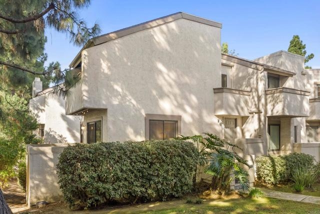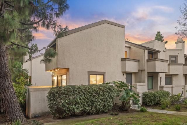 Welcome to this beautiful Woodlands Plan 3 end Unit Townhome that lives like a single detached home. At the entry of the home, you will be greeted by an open floor plan. A beautiful light filled private deck functions like an extension of the living room. This 2 Bedroom, 1.5 Bath is located off the street in a quiet and secluded location, facing an open park-like setting. The unit has maple cabinets throughout, updated flooring, neutral colors & quartz counter-tops and a designated dining area. The well designed kitchen includes a refrigerator, dishwasher, stove, tile flooring along with plenty of storage and counter space. A new garage door has been added. Amazing light cascades throughout the home with plenty of windows throughout. Upstairs, there is a large primary bedroom with high ceilings, oversized closet, full bath and two small balconies. A pocket door leads from the primary into the office/second bedroom. The lower floor is a large two-car garage with automatic door, washer & dryer. The common area has a beautiful pool & tennis courts. Unit is situated close to UCSD and La Jolla shores & park. Whole foods and trader Joes is within walking distance.