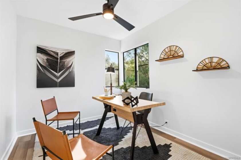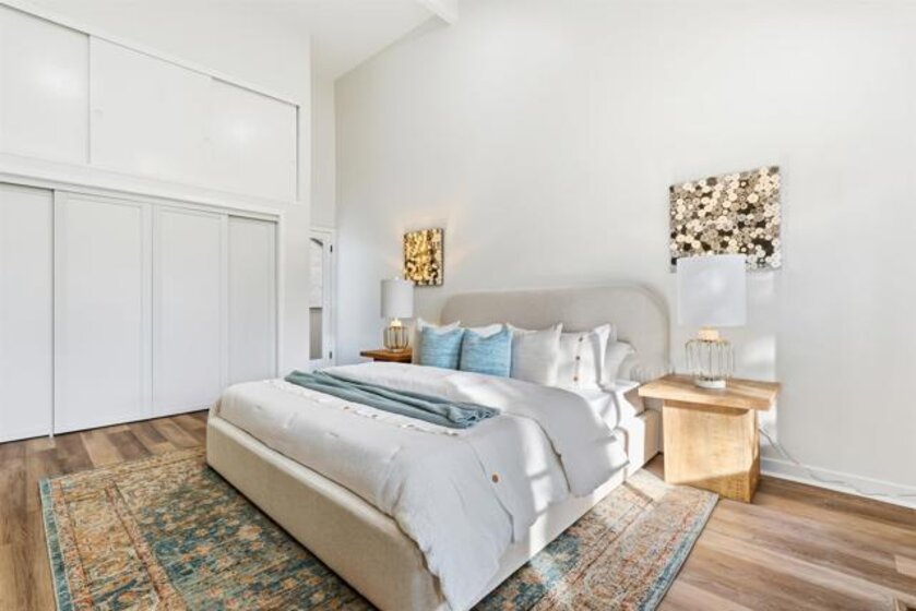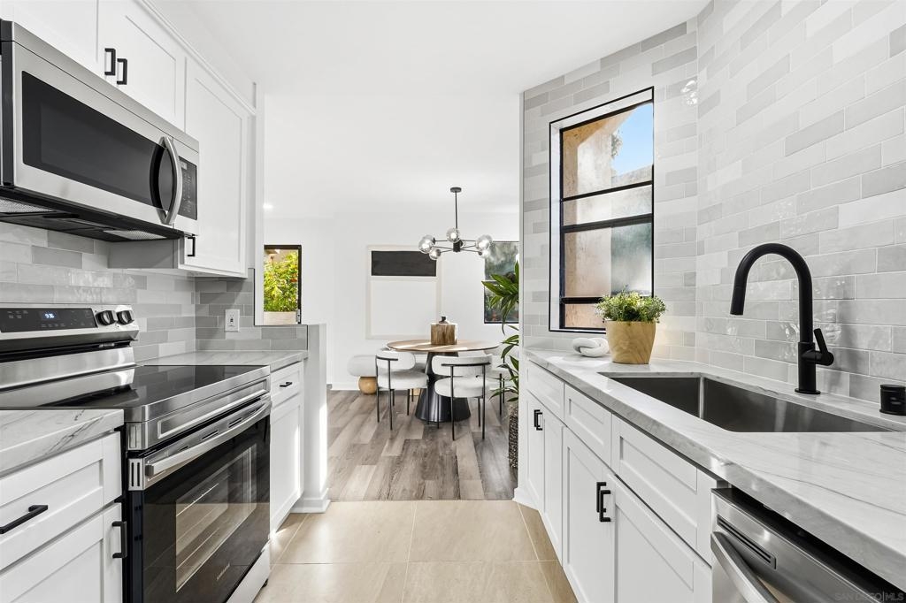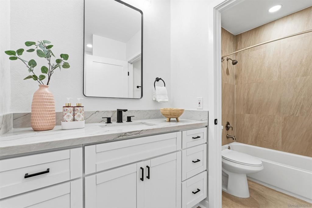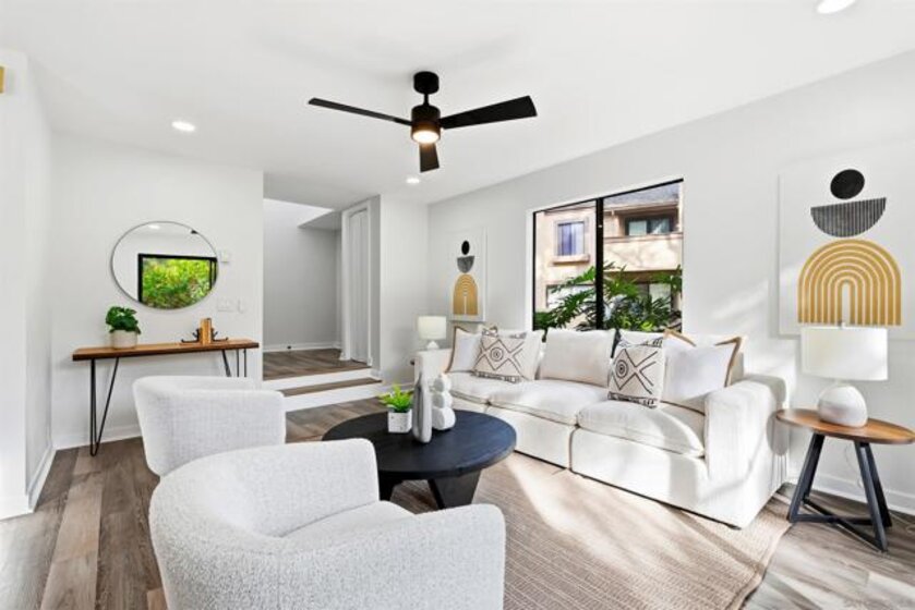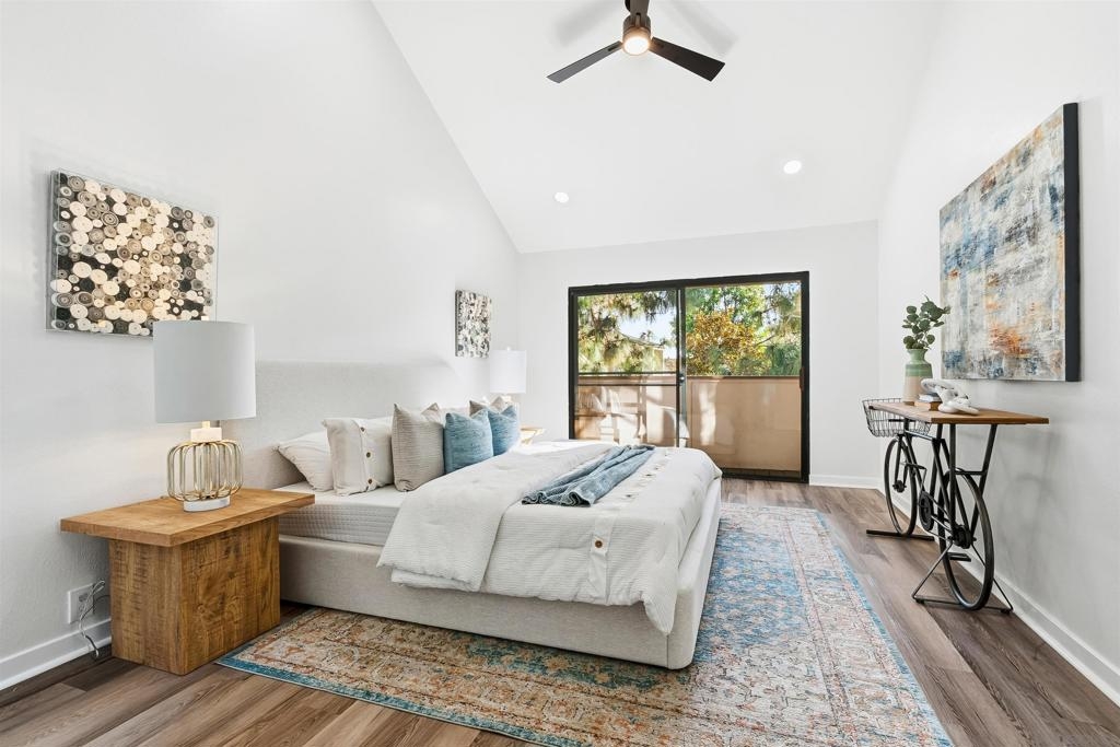 Newly remodeled end-unit property in the highly sought-after Woodlands West community of UTC. This light-filled home features LVP flooring, fresh interior paint, and updated lighting throughout. The modern kitchen is equipped with shaker-style cabinetry, quartz countertops, designer tile backsplash, and brand-new Samsung stainless steel appliances. Upstairs, the spacious primary bedroom boasts soaring vaulted ceilings and a private balcony retreat. Second room upstairs makes a great additional bedroom or office. Enjoy the pool, sports court and amazing landscaping throughout this great complex. Additional highlights include an attached oversized two-car garage and an ideal end-unit location offering added privacy and natural light. Centrally located near shopping, dining, and quick access to the 5 freeway.