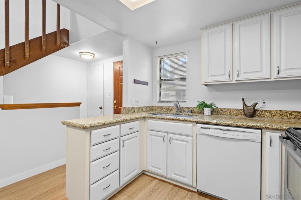 Discover this delightful 1-bedroom, 1-bath townhome offering 876 square feet of living space in the heart of La Jolla. The open-concept floor plan ensures privacy, with no neighbors above or below. Recent updates include fresh paint and newly scraped and retextured ceilings. The upgraded kitchen features granite countertops, stainless steel appliances—including a refrigerator, stove, microwave, and dishwasher—and ample cabinet space. A full-size washer and dryer are also included for your convenience. Step outside to a spacious patio deck, perfect for morning coffee or outdoor relaxation. The townhome also includes a generous 1-car garage with direct access and abundant storage. Woodlands West provides resort-style amenities, including a sparkling pool, relaxing spa, and tennis courts. The location is unbeatable—just a short walk to Villa La Jolla Park for picnics and outdoor fun, La Jolla Village Square for shopping at Trader Joe's, Ralphs, and entertainment at AMC Theaters, as well as the MTS Nobel Trolley station. Enjoy quick access to La Jolla's stunning beaches, UCSD, and thriving tech hubs. This townhome is the perfect blend of coastal living and urban convenience!