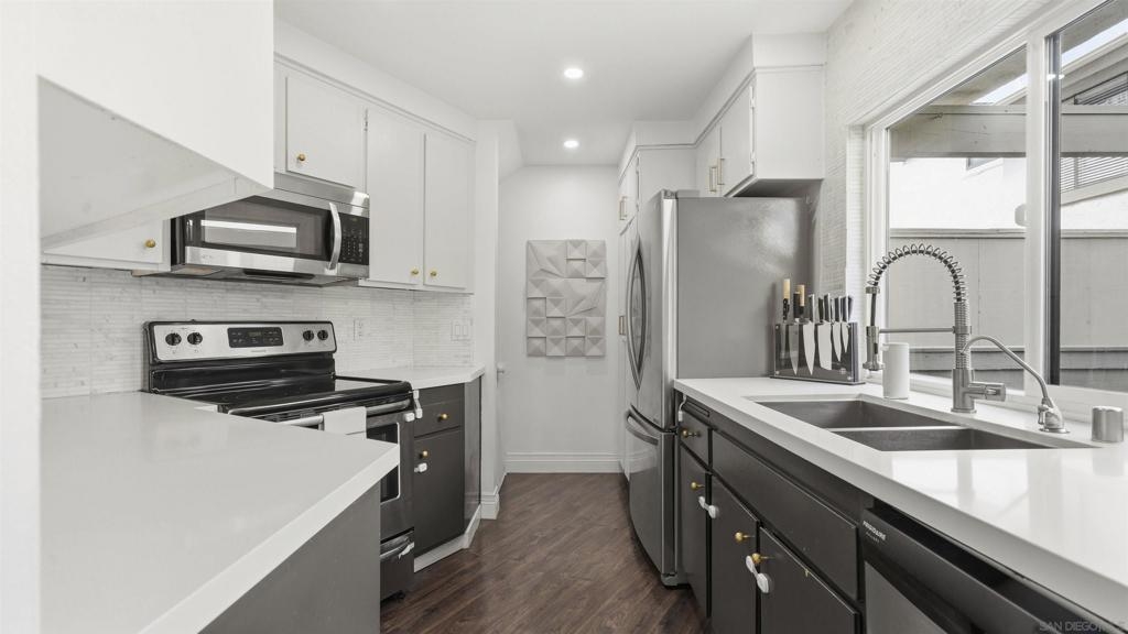 Welcome to 8490 Via Sonoma, Unit 10—an exquisite townhome that redefines modern living in the coveted enclave of La Jolla. This elegant 2-bedroom, 2.5-bathroom residence spans 1,074 square feet of thoughtfully curated luxury, blending contemporary design with everyday comfort. Step into an inviting interior where sleek hardwood laminate floors set the tone for sophistication. The chef-inspired kitchen dazzles with white quartz countertops, carrara marble tile backsplash and premium appliances, ready to bring your culinary visions to life. The open-concept layout seamlessly connects the kitchen to the living area and private outdoor deck, creating an ideal flow for both intimate evenings and lively gatherings. Ascending to the second floor, you’ll find two serene bedrooms, including a capacious primary suite featuring a private deck for relaxation and adorned with an ensuite bathroom featuring a double vanity with white quartz, plus walk-in shower. A great sized second bedroom, plus upgraded 2nd bathroom boasting a shower over the bath. The convenience of an attached 2 car garage offers both secure parking and ample storage, along with a conveniently situated in-unit washer and dryer. Beyond the walls, step into a world of leisure with access to meticulously maintained community amenities. Unwind by the sparkling pool, challenge friends on the tennis court, or enjoy quiet moments under the private cabana. Nestled in a tranquil, highly sought-after neighborhood of Woodlands West 2, this home provides the perfect balance of sophistication and low-maintenance living. Moments from La Jolla’s world-class dining, shopping, and coastline, this property offers a lifestyle as exceptional as its address.