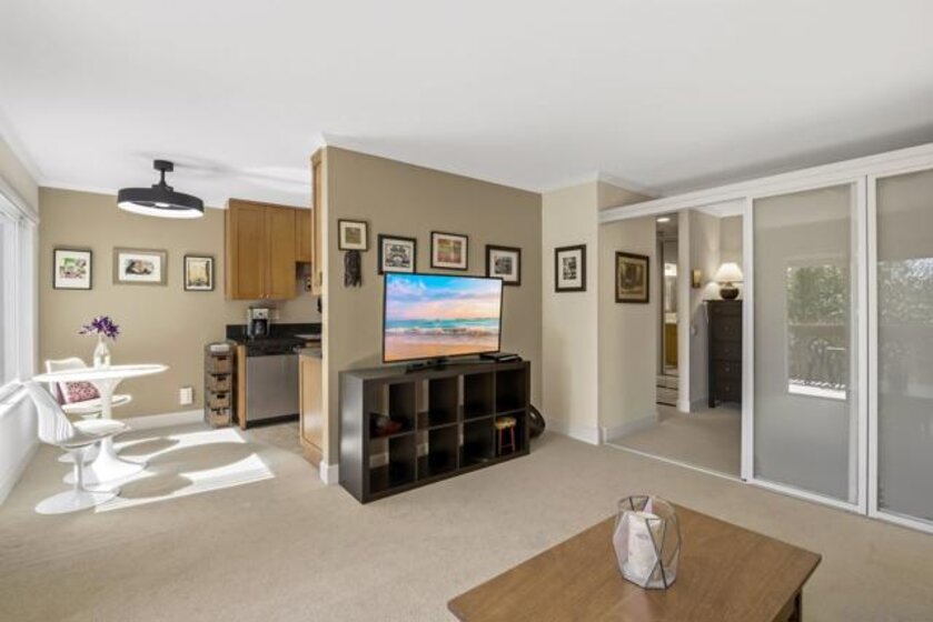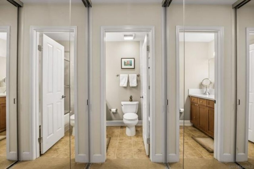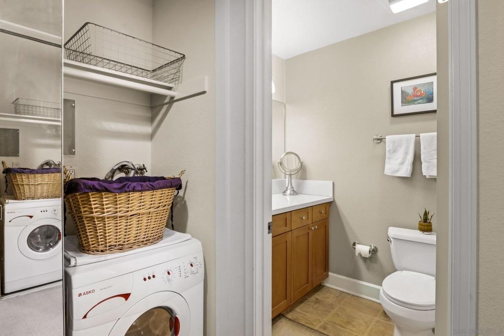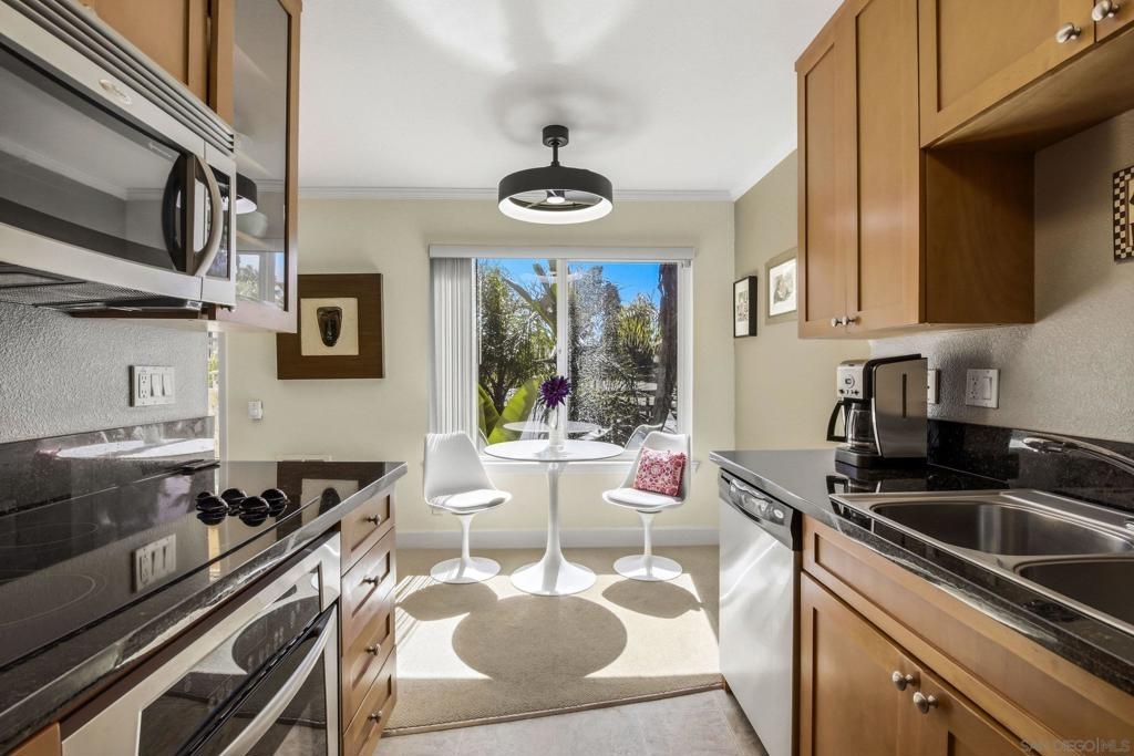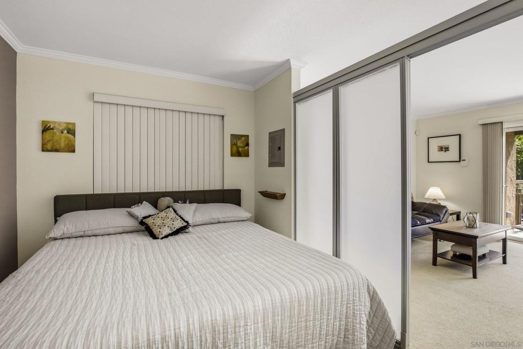 Welcome to Villa La Jolla, a highly sought-after community in the heart of La Jolla Colony—just minutes to UCSD, La Jolla’s renowned beaches, Westfield UTC, top-rated dining, shopping, and convenient freeway access. Tucked away in a quiet interior location, this private second-floor residence is filled with natural light and designed for easy coastal living. Enjoy a long list of optional builder upgrades, including dual-pane windows and sliding door, upgraded cabinetry, granite kitchen countertops, marble countertop in the bath, crown molding, recessed lighting, and the convenience of an in-unit washer/dryer. Step outside to a spacious private patio—perfect for morning coffee, evening unwinding, or casual entertaining. Situated in a prime location, you will also appreciate the lack of road noise and the short walk to your parking space. Villa La Jolla residents enjoy resort-style amenities, including two sparkling pools, a fully equipped fitness center, BBQ area, and a recreation center for gathering with friends and family. Whether you’re looking for a primary residence, second home, or investment opportunity, this home delivers the best of La Jolla living.