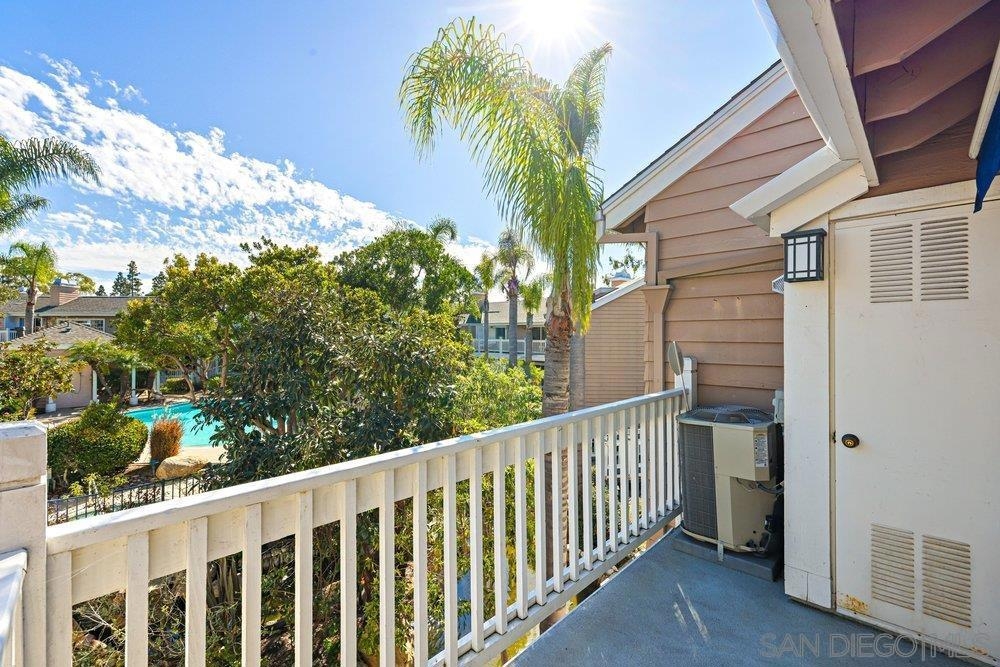 This beautiful split level, second story unit enjoys a private tree house feeling with beach breezes flowing through the primary suite that boasts an extra large closet and separate shower and bathtub. Both bedrooms are on upper level and have no shared walls with neighbors. Owner has upgraded and maintained the unit including kitchen and bathroom remodels, custom closet, extra soundproofing in bedroom floor, dual pane windows, updated plumbing, modern fireplace, and filtered drinking water system. Relax on your private patio overlooking the lush foliage and enjoy living in one of the best condo communities in the area with its water moat and five waterfalls circling the interior of the circular 54 unit complex. Unit includes detached 2-car garage. Complex includes 2 car garage per unit, central pool, jacuzzi, outdoor shower and bathrooms. Owners enjoy the water moat and five waterfalls circling the interior of the circular 54 unit complex. The lush mature tree landscape between inner complex moat and pool / jacuzzi area provides privacy for units and their decks. Visitors may park in visitor space - owners are required to park in the garage spaces.