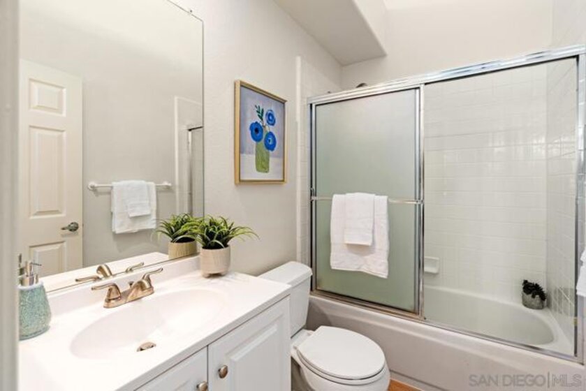 Turn key, two story townhome in La Jolla Gardens, walkable to La Jolla Village Square with restaurants, shopping, theater & more! Minutes to La Jolla Shores beach, UCSD & freeways 5, 805, 15, 52, 163. Spacious, light & bright with one bedroom on the main floor & two master retreats on the second. Loft in between masters, perfect for home office. Upgraded kitchen with granite counter, wood flooring in living. Double-wide private patio. Spacious backyard. Short walk to community pool and spa, and places for pets to roam!