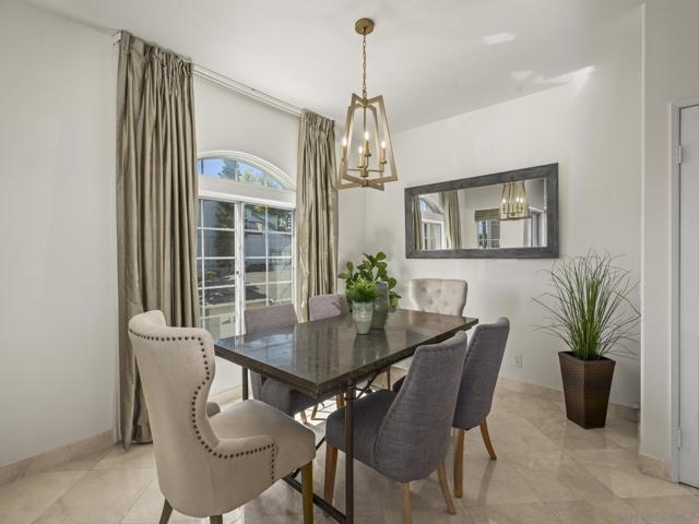 Welcome to a La Jolla residence that embodies timeless elegance and European-inspired sophistication. This beautifully upgraded 2-bedroom, 2-bath condominium offers 1,359 sq. ft. of refined living space in one of Southern California’s most desirable coastal communities. Perfectly situated west of the I-5, the home combines convenience and exclusivity, with effortless access to La Jolla’s world-class beaches, shopping, dining, and culture. Inside, striking marble tile flooring creates an immediate sense of refinement. The renovated kitchen is a culinary highlight, showcasing custom cabinetry, stainless steel appliances, and rich granite countertops with a matching backsplash. Designed for entertaining, the open-concept floor plan flows seamlessly into the dining and living areas. The inviting living room features a granite-accented fireplace and expansive windows that bathe the space in natural light. A sliding glass door opens to a private balcony, ideal for enjoying the coastal breeze. The primary suite offers a spa-inspired retreat, while the second bedroom provides flexibility for guests, office, or lifestyle needs. Additional highlights include new lighting, a dining room chandelier, and two single-car garages, one with adjacent storage room. The well-maintained community offers tranquil walkways, shade trees, a pet area, sparkling pool, and two spas. With its prime location and high-end finishes, this home delivers the perfect balance of luxury, convenience, and coastal charm.
