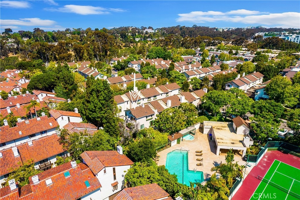 Welcome to Woodlands North, a private community tucked away in La Jolla Village – only 10 minutes from the beach! High ceilings and dual pane windows keep the floorplan bright and airy. Entertain guests on the main floor, boasting stunning hardwood flooring throughout – or step onto a private patio, featuring a serene view of the surrounding greenery. Each and every window has been upgraded to be dual-pane and energy efficient. The end-unit location protects privacy, while conveniently located near private HOA amenities. A remodeled guest bath features designer wallpaper, and a recently upgraded vanity. Step upstairs to the spacious living areas. Mirrored closet doors and plantation shutters allow for abundant natural light, while high ceilings keep the space feeling open and inviting. Your master bedroom features its own private balcony, overlooking trees & amenities below. An upstairs bath has been upgraded from top to bottom, appointed with a tile-detailed tub surround and more. Featuring a full-sized, direct access 2-car garage. Only minutes from legendary San Diego beaches, and the Birch Aquarium, located conveniently near downtown San Diego. Enjoy all the best Southern California has to offer.