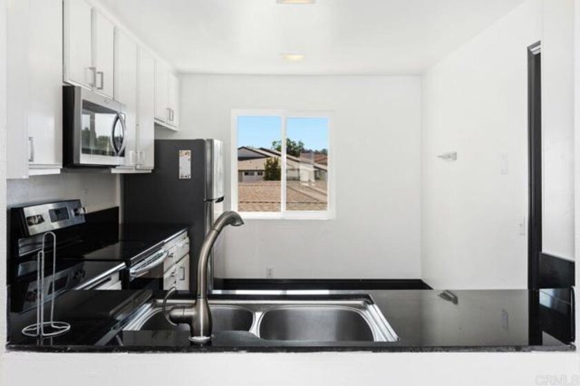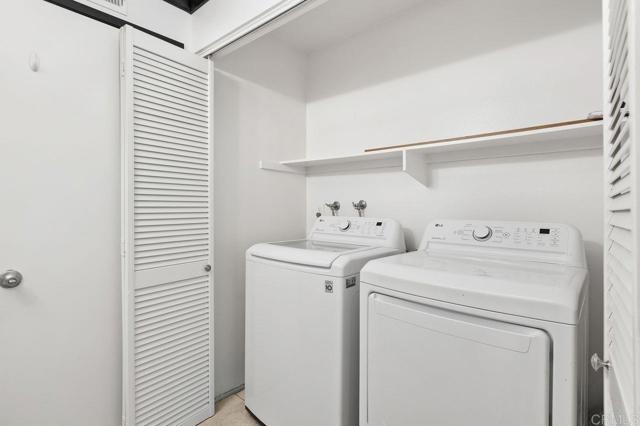 Perfectly situated near UCSD, this upstairs La Jolla Terrace residence offers 2 bedrooms and 2 full bathrooms with vaulted ceilings in the living and dining areas. The layout provides privacy between the bedrooms, with the primary suite’s spacious bathroom and walk-in closet creating separation from the second bedroom. The primary suite also features dual vanities, a jetted soaking tub, and a private water closet. From both the primary bedroom and the living room, step out to a private balcony with serene pool views. A sleek black-tiled fireplace adds warmth and character to the living space. The kitchen is finished with granite countertops and stainless-steel appliances, and the laundry is conveniently located in the hall bathroom. The oversized two-car garage is just steps from the entry, with guest parking ideally placed on the balcony side of the building. An excellent opportunity for faculty, professionals, or anyone seeking a well-located La Jolla home close to UTC, shopping, dining, and the best of coastal living.