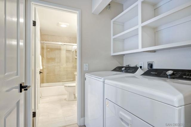 This freshly renovated condo in the highly sought after Boardwalk complex is centrally located within walking distance to UCSD, shopping, dining and medical facilities. Updated kitchen and baths include new stainless steel appliances, new bath sinks, quartz countertops, wine cooler, new tiled shower with glass doors in primary bath. Open floor plan has been appointed with new modern plumbing and lighting fixtures, all new hardware and recessed lighting in kitchen and living room. New plank flooring and paint throughout, fireplace with gas starter, dry bar which is plumbed for a sink, and full-sized laundry in unit. Relax outside on your own private, covered balcony accessible from both Living rm and Primary bedroom. Enjoy an active lifestyle with all the resort like amenities right on property (Pool, spa, tennis, billiards, clubhouse) Controlled access building with an elevator and 2 parking spaces in the controlled access garage. Additional storage cabinets in garage above parking spaces. Must see! Ready for immediate move in.
