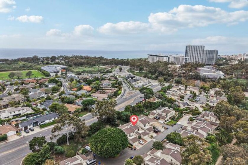 PRIME LA JOLLA SHORES HEIGHTS LOCATION * WEST OF THE 5 FREEWAY * LARGE TOWNHOME ONLY SHARING ONE WALL * BEAUTIFULLY UPGRADED BONUS ROOM DOWNSTAIRS * LARGE BACKYARD * 2 CAR ATTACHED GARAGE WITH EXTRA OUTDOOR PARKING SPACE! Beautifully upgraded and truly impressive, this home makes a stunning first impression the moment you walk through the door, showcasing quality finishes, thoughtful updates, and a layout perfectly designed for comfortable living and entertaining. The fully remodeled kitchen is a standout, featuring gray shaker cabinetry, abundant counter space, sleek quartz countertops, stainless steel appliances, and elegant hardware paired with a striking gold-bronze faucet that adds the perfect designer touch. Throughout the home you’ll find upgraded flooring, crown molding, recessed lighting, 3 skylights that bring in natural light, and a large fireplace anchoring the living room, while a separate family room provides additional space to relax or gather. A versatile optional room or den on the first floor offers flexibility for guests, a home office, or multi-generational living.Upstairs, three spacious bedrooms feature vaulted ceilings that enhance the open, airy feel. The primary suite is truly special, complete with its own private balcony and a beautifully upgraded bathroom boasting a double vanity, soaking tub, matching tile accents, and a walk-in closet. The hall bathroom is equally refined with a designer vanity and walk-in shower, and the convenient upstairs laundry closet makes daily living easy. Step outside to a large backyard that backs to a greenbelt, offering privacy and the perfect setting for entertaining, relaxing, or simply enjoying the outdoors. The two-car garage provides direct access into the home, plus an additional parking space for added convenience. Water is included in the HOA, and the brand-new roof adds even more value and peace of mind. With only one shared wall, this home has the privacy and comfort you want. All appliances convey (including washer and dryer) and 3 mounted TV's.Located in the beautifully tree-lined community of La Jolla Shores Heights, residents enjoy access to a pool, tennis court, and playground, and is just minutes from UCSD (within walking distance), UTC Mall, La Jolla Playhouse, Birch Aquarium, La Jolla Village shopping and dining, Whole Foods, Trader Joe’s, AMC, the trolley station, YMCA, parks, and the world-famous beaches of La Jolla Shores and San Diego's famous beaches. This is the total package — style, comfort, location, and lifestyle all in one!