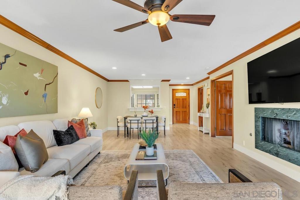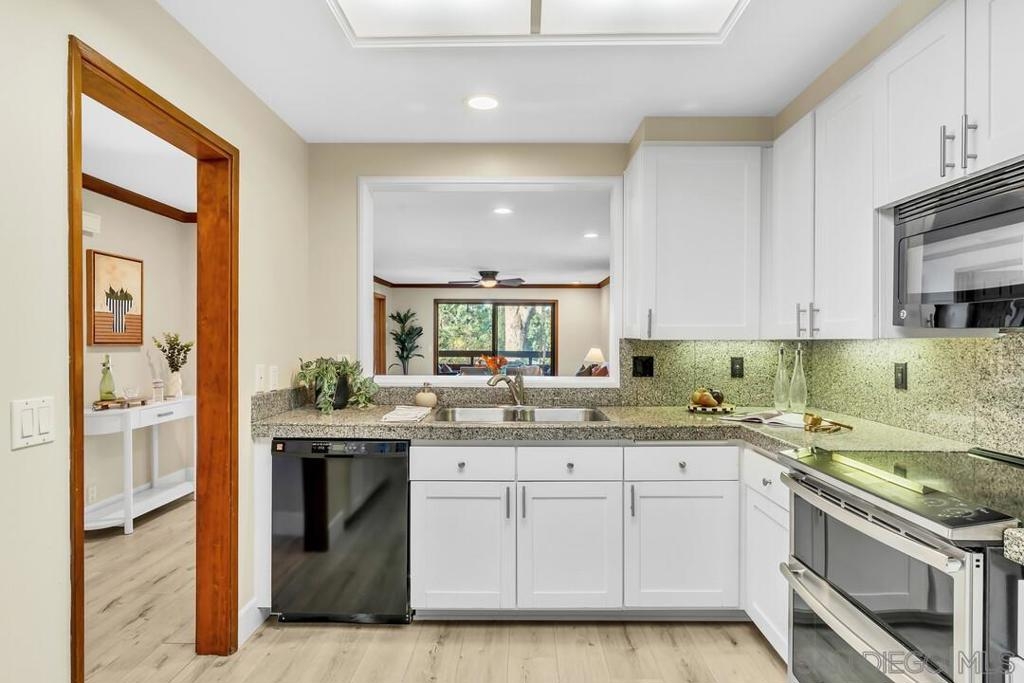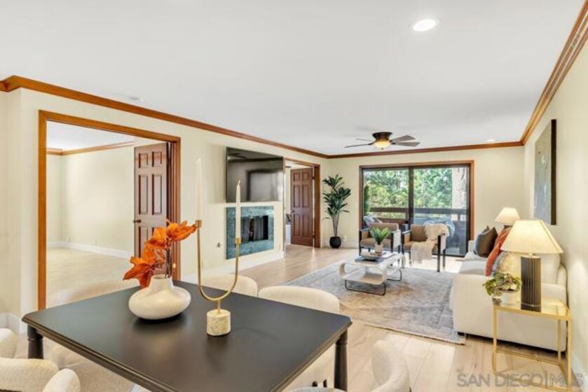 A rare opportunity to own a single-level 3-bedroom corner unit in La Jolla 92037 under $1M, a combination seldom available in this coastal market. Privately positioned within the sought-after Boardwalk community, this home offers long-term ownership flexibility. The open living and dining great room flows to a private balcony with serene, tree-lined views. The updated kitchen features double ovens, ample storage, and a functional layout. Three well-sized bedrooms provide options for guests, workspace, or additional living needs. Wide plank flooring, upgraded features, and in-unit laundry add convenience. Enjoy secure, gated underground parking with two assigned spaces, two storage units, elevator access to your floor, secure building entry, trash chute access on each level, and nearby guest parking. HOA dues include water, gas, and trash. The community offers lush tropical landscaping and amenities including pool, spa, tennis/pickleball courts, sauna, clubroom, and EV charging stations. Located near UCSD, the biotech corridor, major tech employers, leading medical centers, and iconic beaches. Directly across the street is one of La Jolla’s favorite shopping centers featuring Whole Foods, dining, shopping, and a movie theatre. Walkable to the trolley with direct access to Little Italy and Mission Valley. Opportunities to secure a true three-bedroom, single-level residence in La Jolla at this price point are limited - positioning this home as a compelling entry into one of coastal San Diego’s most so