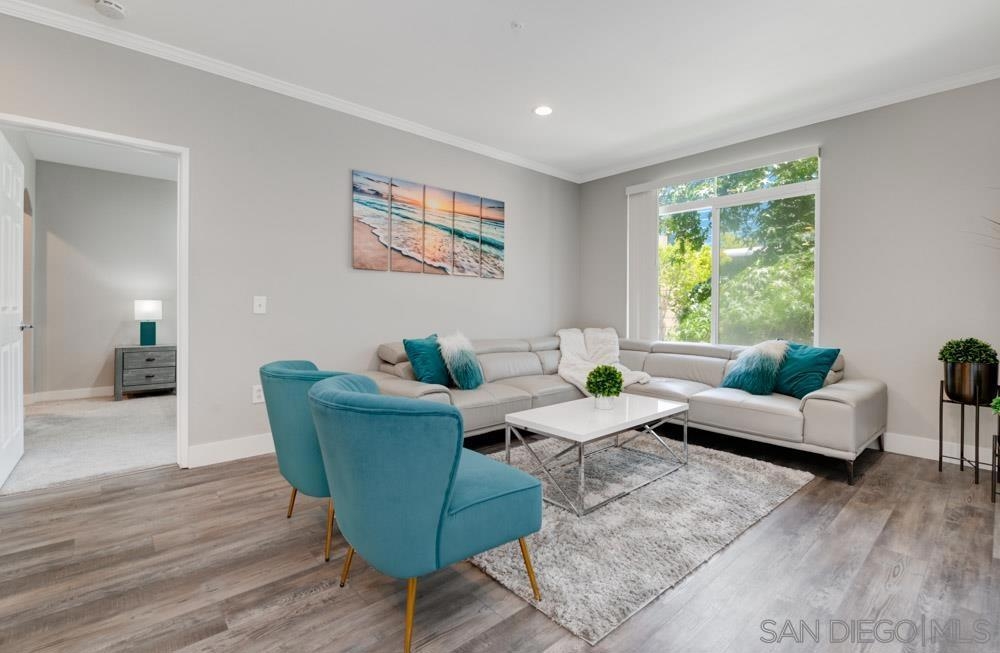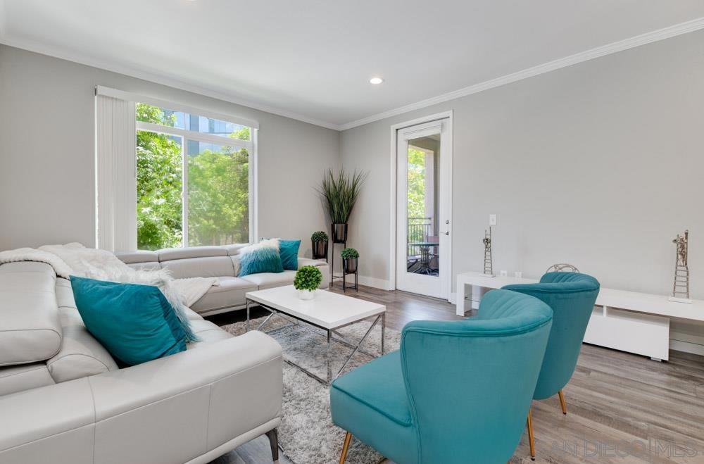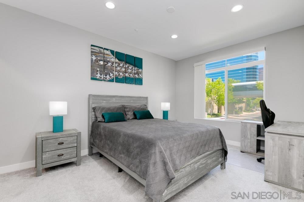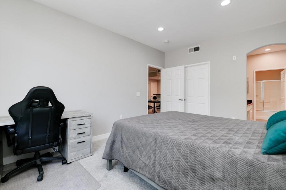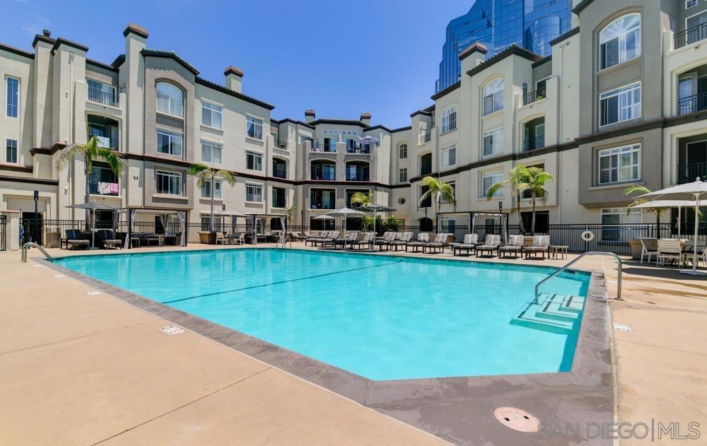 THE BEST DEAL available in Regents La Jolla! This luxury resort-style community is a must-see. This expansive 2-bedroom, 2-bathroom home features an open layout, high ceilings, and a split floor plan, ideal for roommates or a home office setup. Easily pull into your two reserved parking spaces in the secured garage and take the elevator to the second floor. Newer vinyl floors and carpeting, a freshly updated interior, recessed lights, and oversized windows drench the interior in natural lighting. A full-size washer and dryer are in the closet on the attached patio space. The updates don't stop inside the home; the community is amenity-rich! Multiple pools, spas, cabanas, entertainment rooms, a community kitchen and dining area for private events, a movie theater, and a lively sports bar make it so you never have to leave. If you have to leave this paradise, you can enjoy some of the best food and shopping San Diego offers within walking distance. Also, this is located a short distance from the 5, 805, and 52 freeways. Tour this home today and start imagining your new lifestyle at Regents La Jolla!