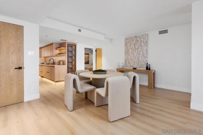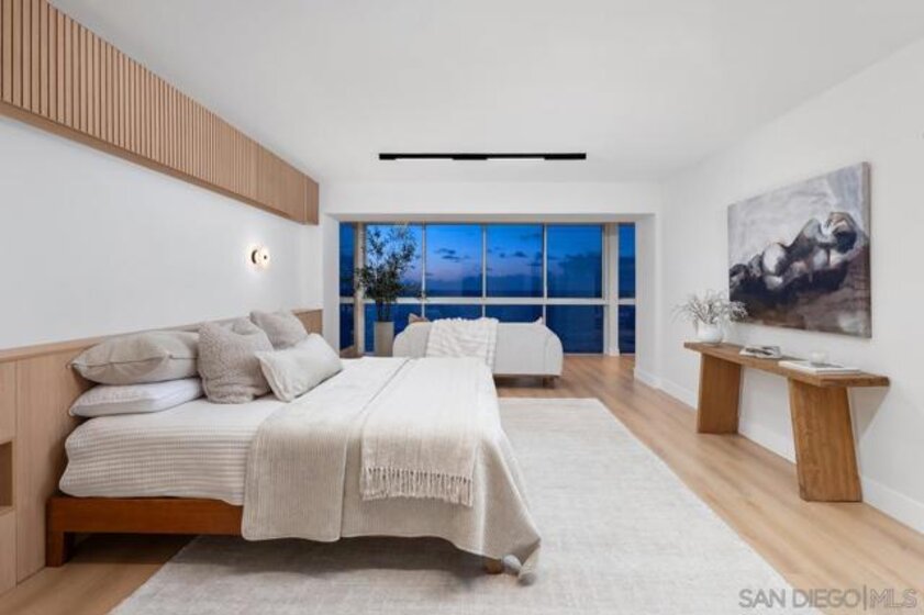 Perched high above the coastline on the 14th floor in coveted La Jolla, this gorgeous home embodies refined coastal luxury with breathtaking, unobstructed ocean views framed by dramatic floor-to-ceiling windows. Bathed in natural light, the home offers a truly elevated living experience from sunrise to sunset. Thoughtfully designed with a seamless open-concept layout, the space blends modern elegance with effortless functionality. It is ideal for both sophisticated entertaining and everyday living. Every detail has been meticulously curated, showcasing high-end finishes and remarkable craftsmanship throughout. The chef’s kitchen features premium Fisher & Paykel appliances, complemented by custom cabinetry, integrated paneling, and striking design elements. White oak doors, custom sinks, and magnetic track lighting add a distinctive architectural edge, while LED lighting throughout the entire home enhances both ambiance and efficiency. A fully integrated Lutron smart home system provides effortless control of lighting and comfort, elevating the home’s modern convenience. Ideally situated just steps from the beach, residents enjoy walkable access to some of La Jolla’s most celebrated dining and shopping destinations, including George’s at the Cove, Duke’s La Jolla, The Cottage, and the boutiques along Girard Avenue. This stunning home offers the ultimate blend of luxury, convenience, and coastal lifestyle.