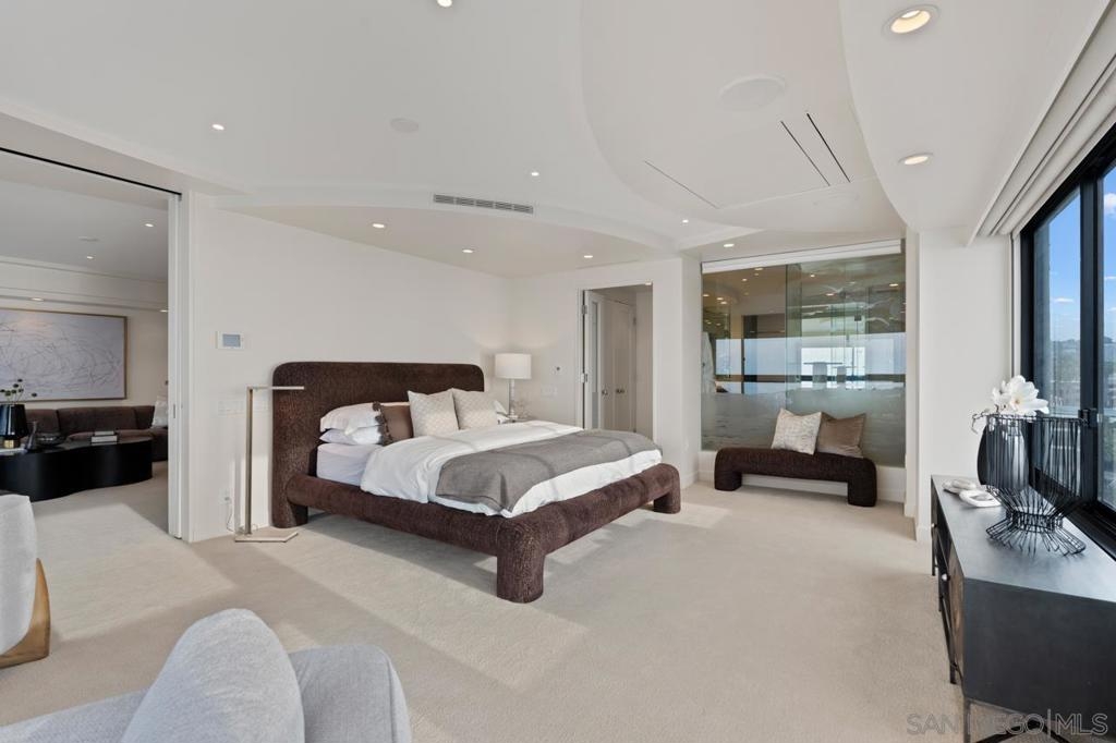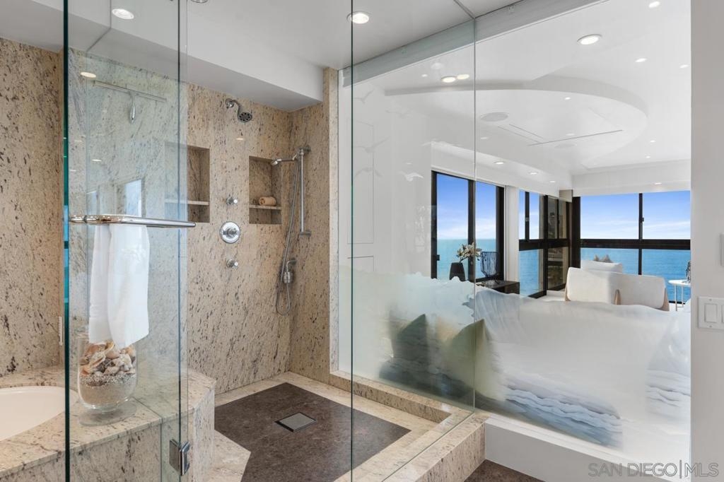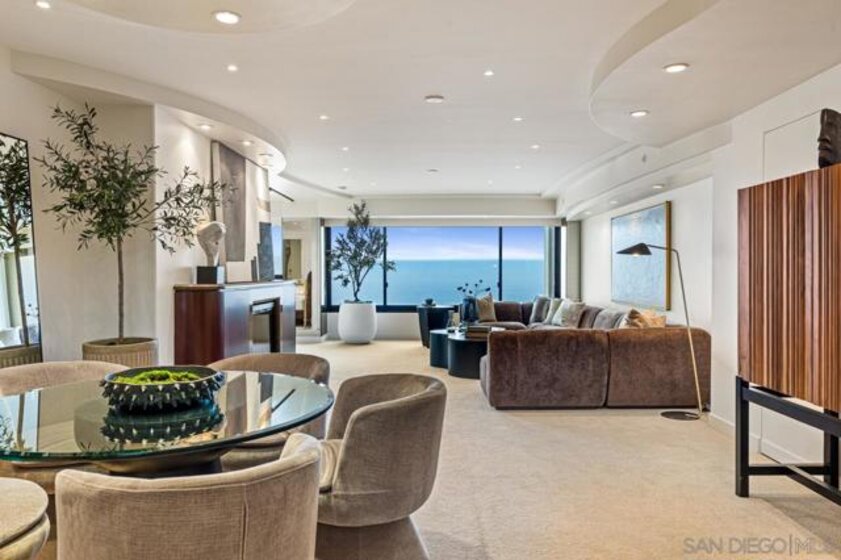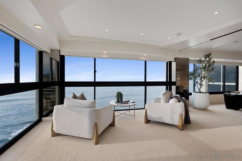 Seller will entertain offers between $3,995,000 - $4,149,000. Perched high above the coastline, Residence 15E is a rare corner offering with sweeping southwesterly ocean views from nearly every room — a commanding vantage point over the Pacific and La Jolla’s most breathtaking sunsets. This exceptional and seldom-available floorplan has been masterfully transformed with over $850,000 in bespoke designer enhancements, resulting in a home that embodies refined, sophisticated coastal living. Expansive living and dining spaces are wrapped in walls of glass, anchored by a statement fireplace, and curated to frame the ocean as a living work of art. The sleek chef’s kitchen showcases top-shelf appliances, custom finishes, and an understated elegance where form meets function. The primary suite is a private retreat suspended above the sea, offering panoramic views, dual closets, and a spa-inspired bath with soaking tub, oversized shower, and dual vanities designed for indulgent tranquility. A second ocean-view bedroom and a separate study provide flexibility without compromise — each space immersed in light, sky, and horizon. Within 939 Coast, La Jolla’s premier high-rise, residents enjoy white-glove amenities including a 24-hour concierge, on-site management, valet parking, guest suites, library, game room, and elegant community spaces. This is more than a residence. It is a rare and elevated expression of coastal sophistication — refined, reimagined, and truly irreplaceable.
